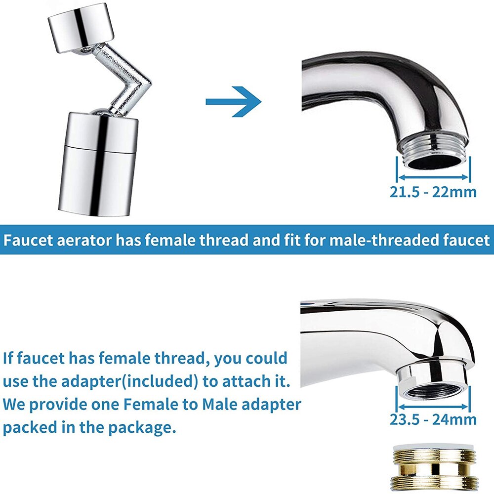 It's suitable for internal thread diameter 23.5-24mm.If faucet adapter without use, it's suitable for internal thread diameter 22mm.And manual installation can be done directly without tools.